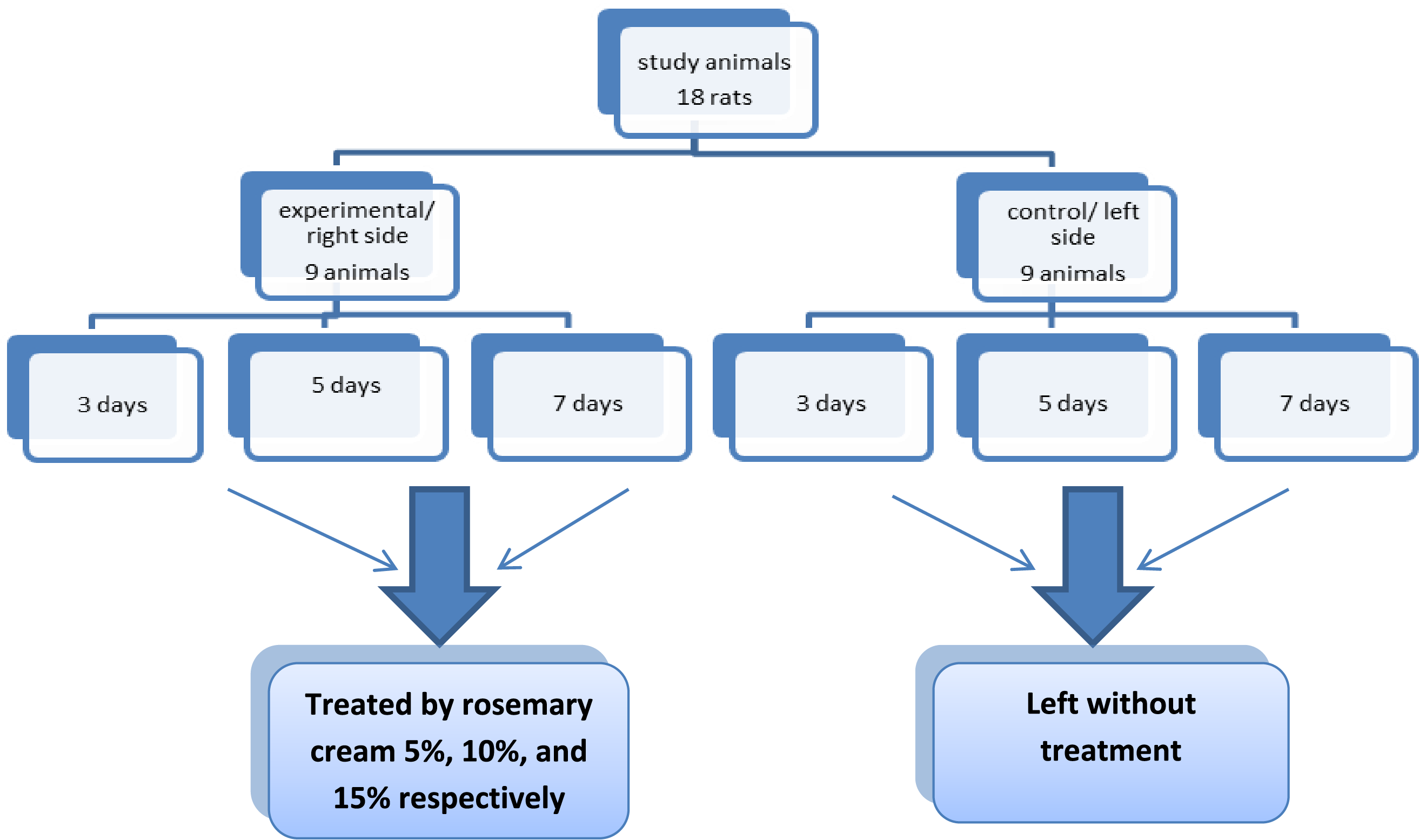 Fig. 1. The design of the study according to the healing periods and concentration of rosemary cream.