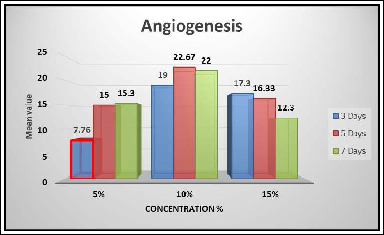 Fig 6. Mean values of angiogenesis (new blood vessels formation) among experimental groups treated with various concentrations of rosemary cream.